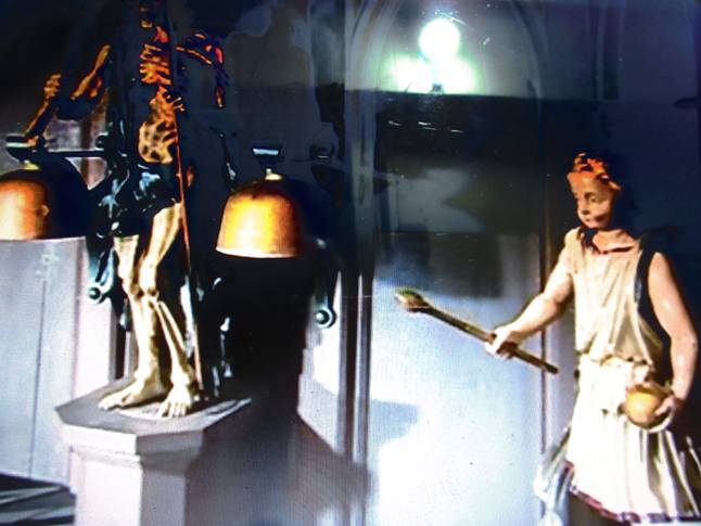 Vào 6 giờ sáng, cửa sổ tháp nhà thờ mở ra, hình một thiếu nhi vác vồ ra gõ 6 tiếng.