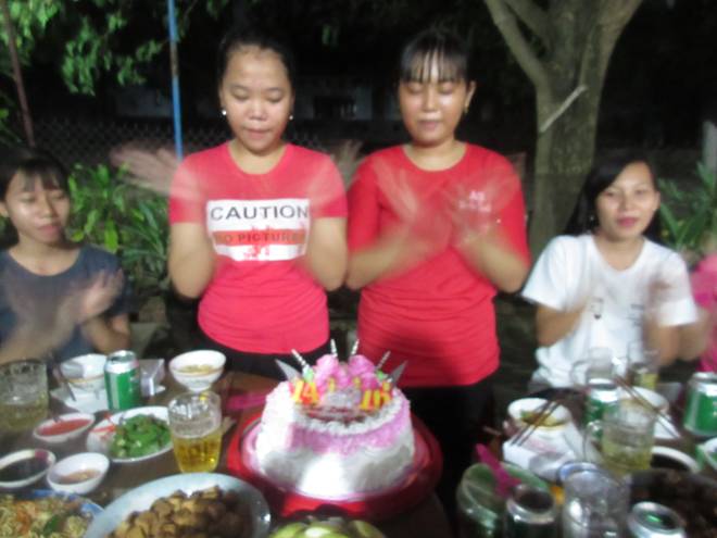 Được biết tin như thế. Trưa hôm đó, cả nhóm ngồi lại bàn bạc và lên kế hoạch để tổ chức buổi tiệc bất ngờ cho thầy và hai bạn. Khi đã bàn bạc xong, chúng tôi phân công nhiệm vụ cho từng bạn và sẵn sàng bắt tay vào công việc. 19h tất cả đã có mặt tại nhà thờ. Các bạn đã chuẩn bị tương đối xong cái thứ nào là trái cây, nước ngọt, các món ăn nướng... Đặc biệt một thứ không thể thiếu trong bữa tiệc là bánh kem. Tiệc được tổ chức lúc 20h với sự hiện diện của Bố, Cha phó và Thầy cùng sự có mặt đông đủ của các bạn trong nhóm Huynh Trưởng. Để mở đầu cho buổi tiệc chị Trúc Mai đại diện cho nhóm để nói vài lời tuyên bố lý do của buổi tiệc hôm nay. Với sự vui vẻ, hòa đồng và nhanh nhẹn của chị đã làm cho bầu không khí buổi tiệc trở nên rộn ràng và náo nức hơn hẳn. Lúc này những ngọn nến lung linh được thắp sáng. Trong giây phút thiêng liêng khi hai bạn cùng tháng sinh cầu nguyện và thổi nến, hòa cùng bản nhạc “Chúc Mừng Sinh Nhật”. Mọi người vây quanh ca hát, cùng nói cười vui vẻ và không quên những lời chúc yêu thương đến hai bạn. Với những lời chúc đơn sơ, mộc mạc nhưng ẩn chứa một cảm xúc dồi dào.